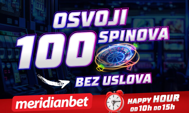 Pred vama je izuzetna zabava koja se u Meridianu održava svakog utorka i četvrtka. Upravo tim danima u periodu od 10 do 15 časova održava se Happy Hour period iz kojeg možete izaći bogatiji za 100 POKLON SPINOVA.