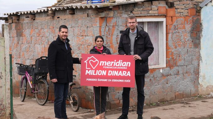 „Meridian fondacija je ovoga puta došla u selo Uzdin, kod porodice Šamanc koja živi u kući koja je neuslovna. Tim povodom, odlučili smo da im pomognemo da izgrade novu kuću našom donacijom od milion dinara. Nadamo se da će i drugi ljudi dobre volje, kao i društveno odgovorne kompanije naći načina, volje i želje da pomognu ovoj porodici i omoguće bolji život“, izjavio je Jovan Ignjatović, predstavnik Meridian fondacije.