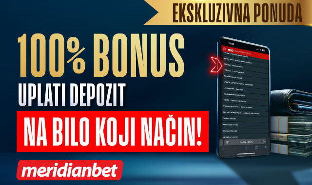 Registrujte se na meridianbet.rs sajtu ili mobilnoj aplikaciji verifikujte svoj nalog i odmah zatim dobijate 500 POKLON SPINOVA! Ukoliko uplatite prvi depozit u iznosu od bar 1.000 RSD čeka vas 5.000 RSD BONUSA za sportsko klađenje. Uživajte u neodoljivom BONUSU DOBRODOŠLICE koji vam može priuštiti samo Meridian!