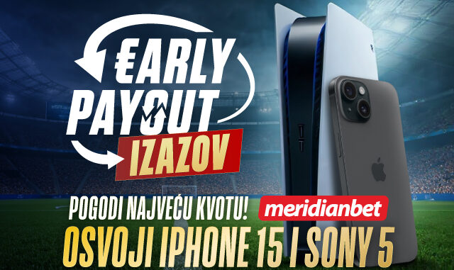 Ali, to nije sve! Sve do kraja februara se održava Early Payout izazov! Pridružite se takmičenju koje vam može doneti iPhone 15 ili Sony Plastation 5. A, da biste učestvovali, potrebno je da se na vašem tiketu nađe bar jedan meč iz Early Payout ponude.